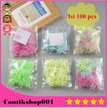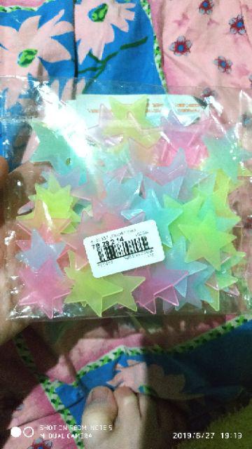 Stiker dekorasi bintang glow in dark 3cm 100 pcs.